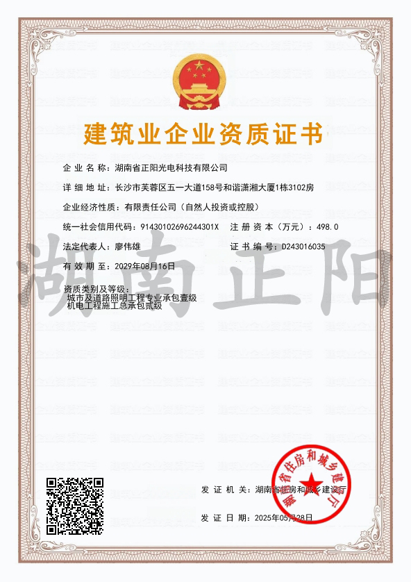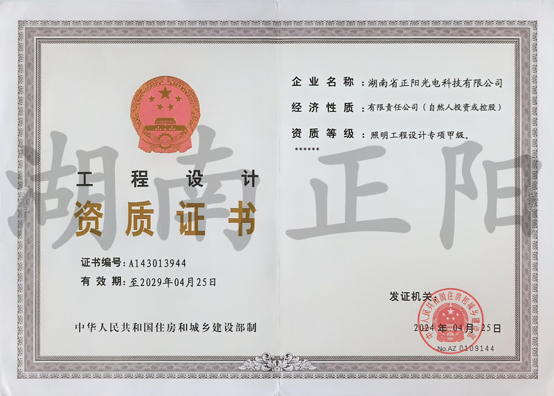 湖南省正陽光電科技有限公司是一家從事亮化工程及大型燈光藝術(shù)的設(shè)計(jì)、制作、安裝和維護(hù)于一體的專業(yè)化公司。公司資質(zhì)齊全、管理嚴(yán)謹(jǐn)、技術(shù)先進(jìn)、實(shí)力雄厚,取得了城市及道路照明工程專業(yè)承包壹級(jí)資質(zhì)、照明工程設(shè)計(jì)專項(xiàng)甲級(jí)資質(zhì)、國家高新技術(shù)企業(yè)、國家“重質(zhì)量·守誠信”示范企業(yè)。